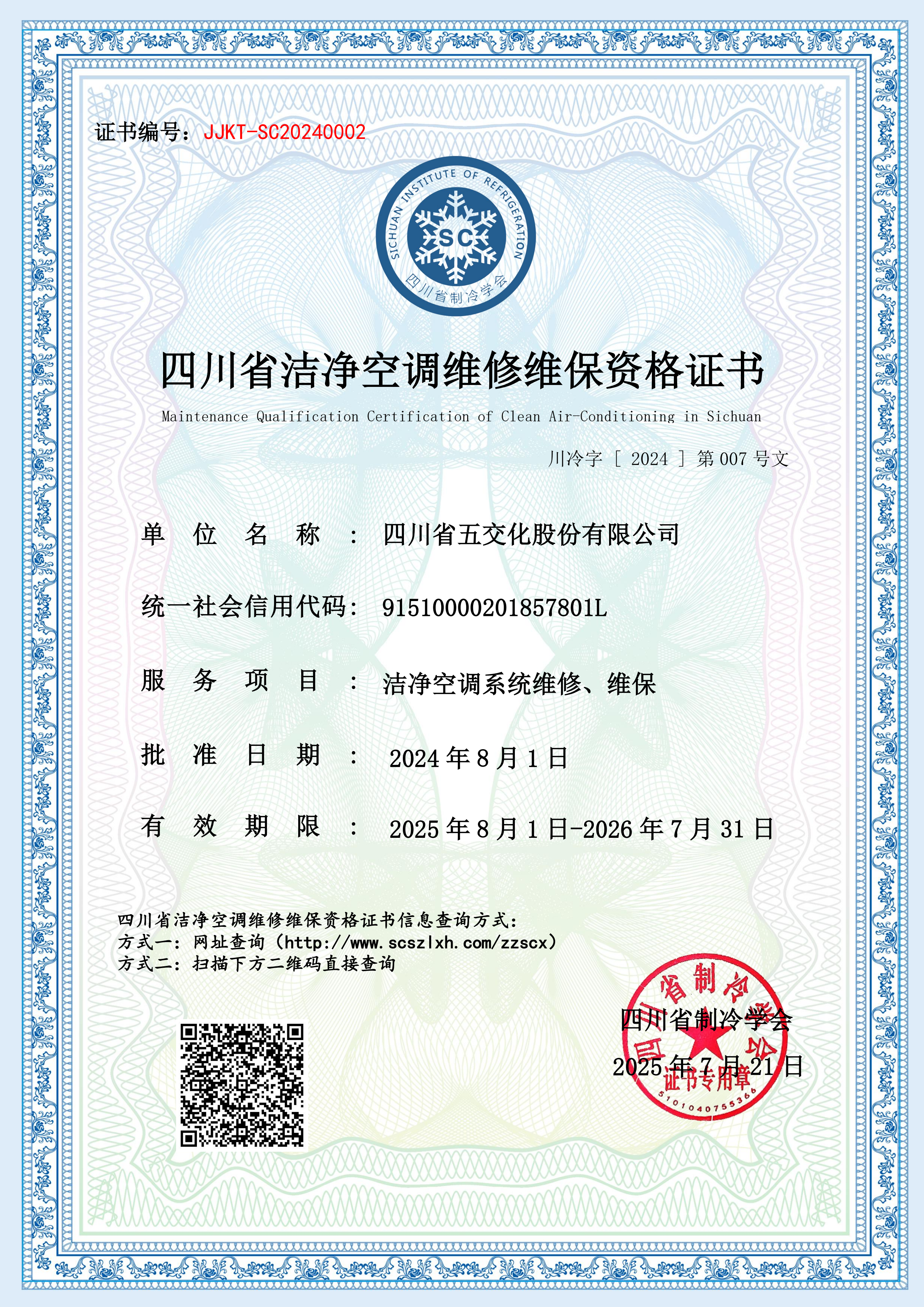 四川省五交化股份有限公司-洁净空调维修维保资质