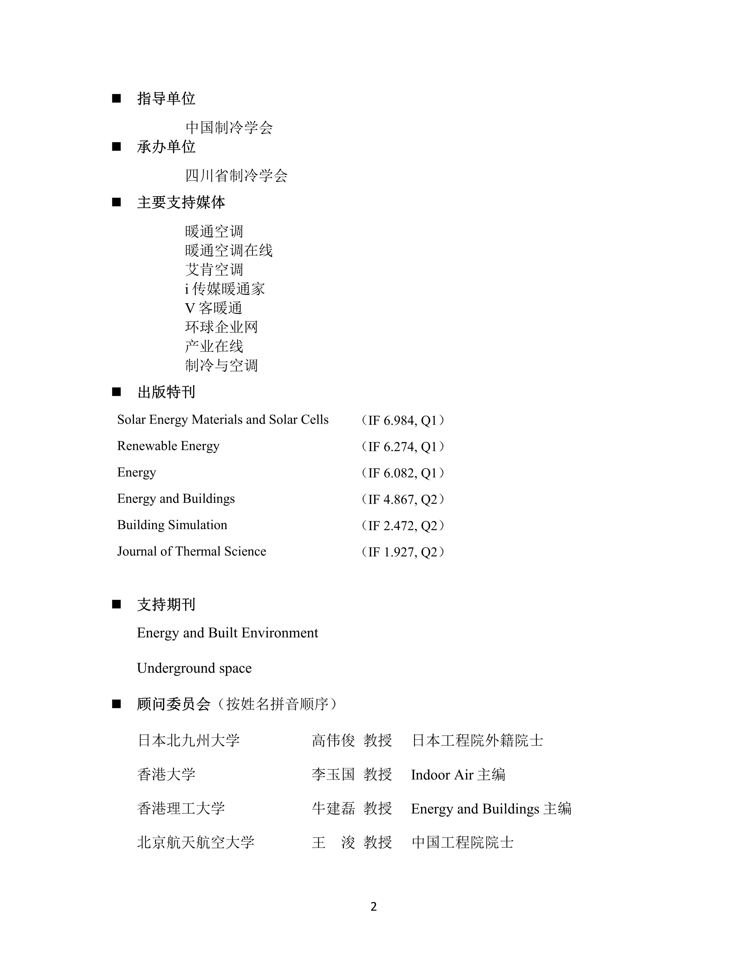第二届华人能源与人工环境国际学术会议征稿启事及奖项申请通知